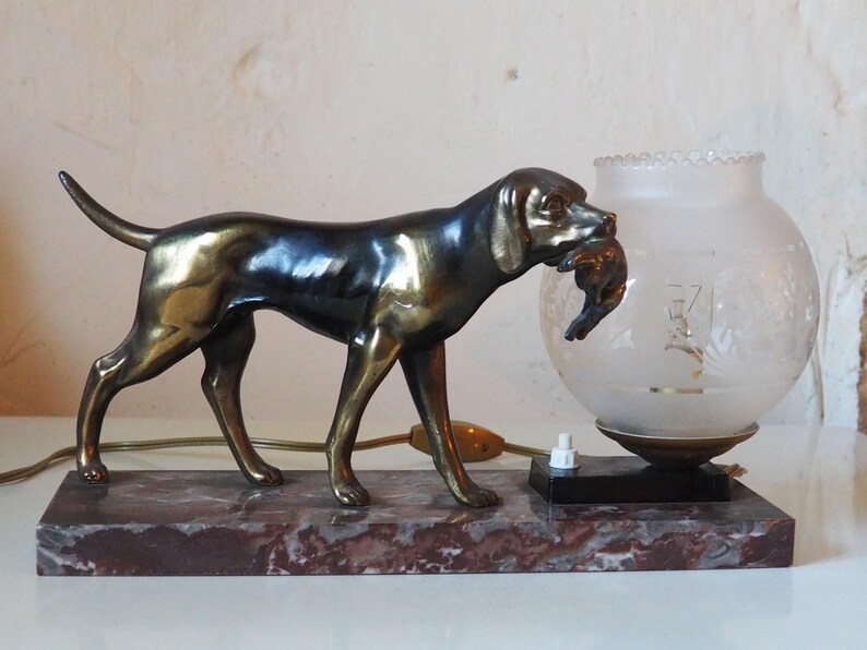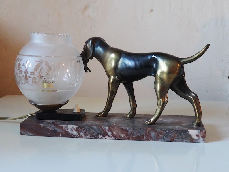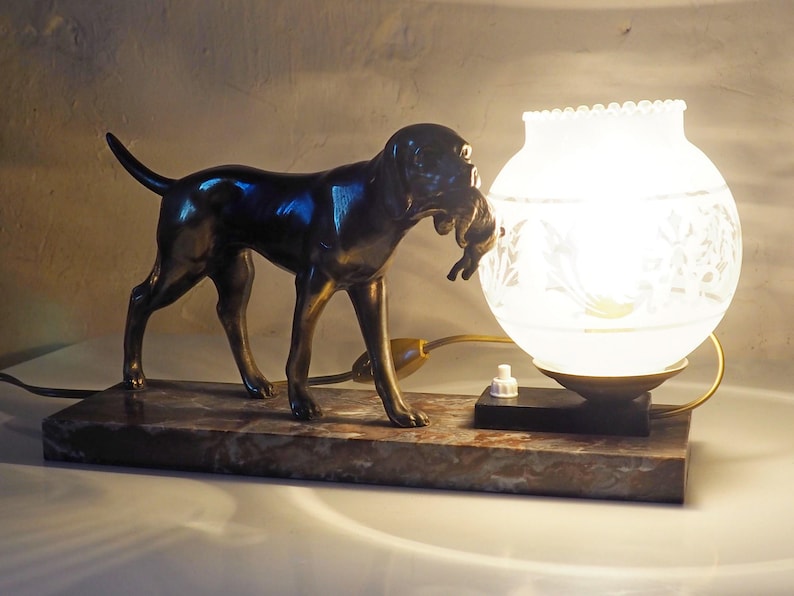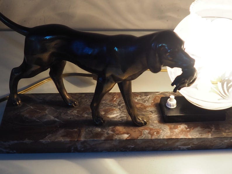 Incorporating this French art deco hunting dog on a marble base with a switched lamp into your home decor is an effortless way to add a touch of vintage charm while enjoying modern convenience. Don’t miss out on the opportunity to own this unique piece that beautifully marries art and lighting. Transform your space today!