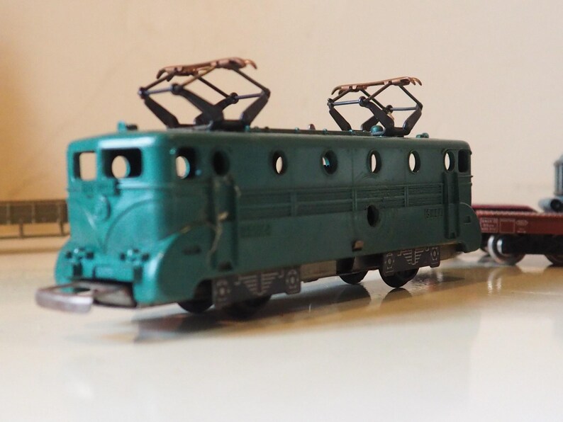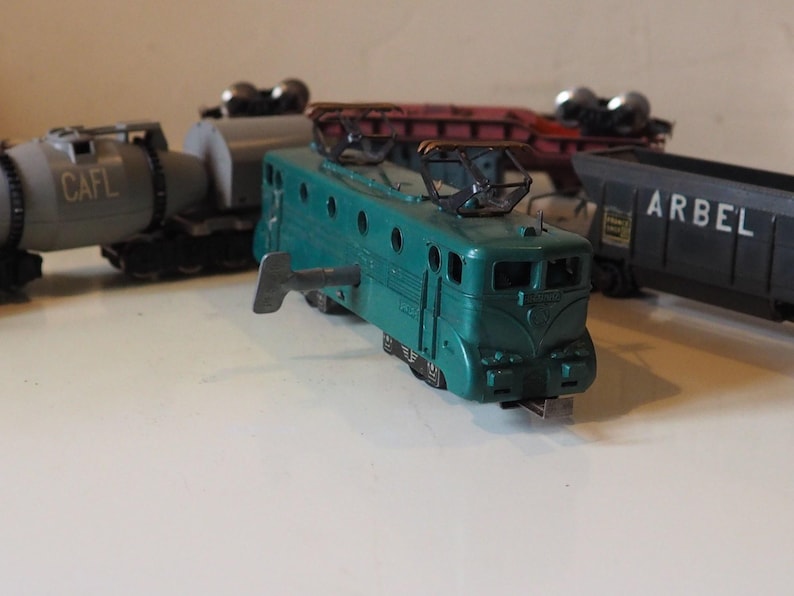 Included in the set is a locomotive in Green Jouef bb9004 sncf clockwork with key and working.
