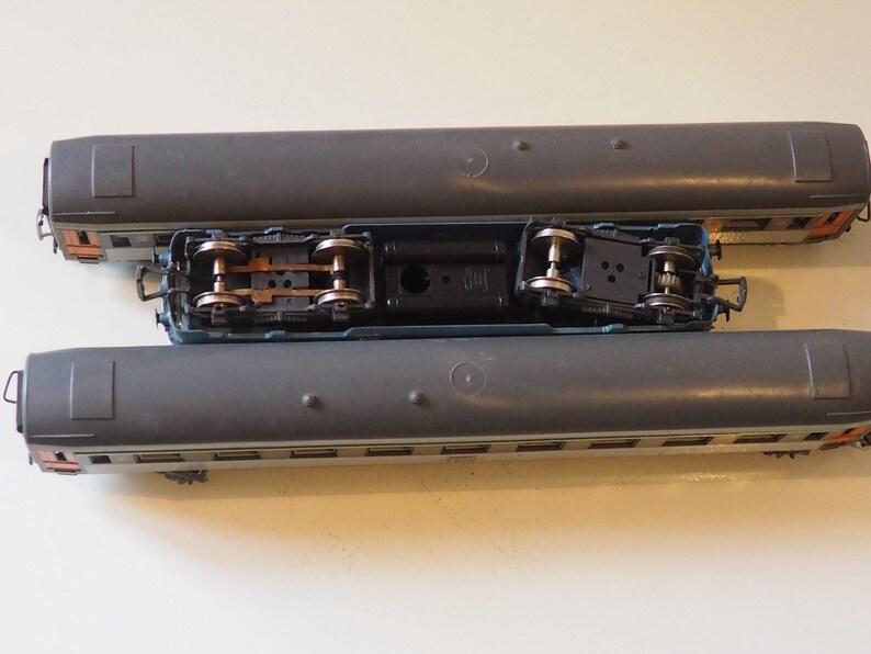 Jouef French Ho gauge 12v electric diesel locomotive and 2 passenger Coaches vintage