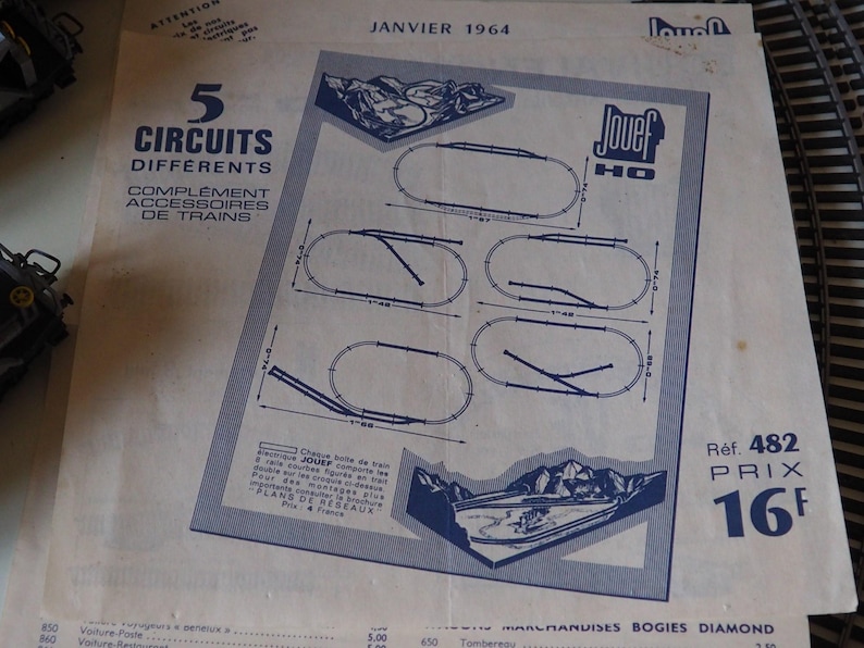 A French vintage Jouef ho scale electric train set 12v from the mid 1960s, I think this one one of many add on sets that you could buy at the time to extend your railway set as there are only 6 pieces of semi cicrular track with it and no transformer.