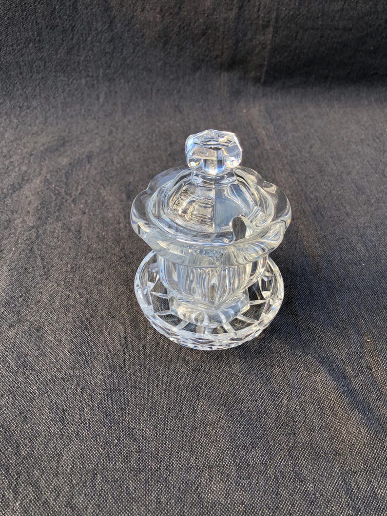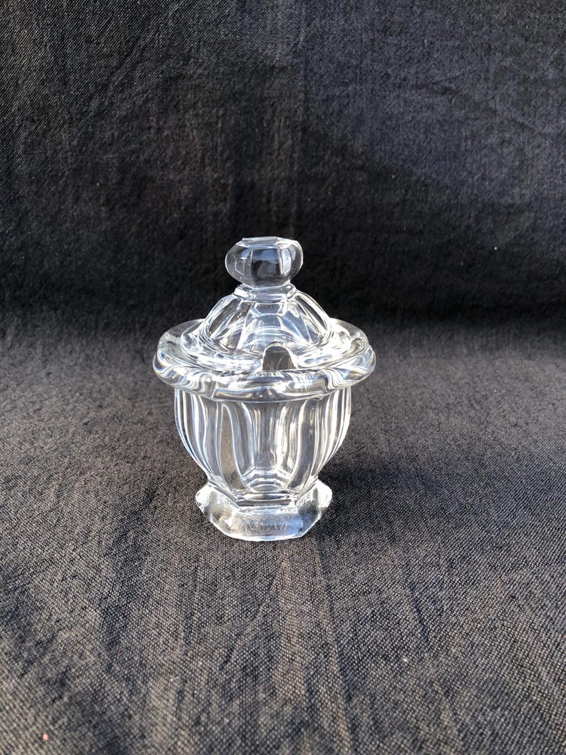 This vintage Baccarat crystal mustard/jam jar/honey jar, Harcourt Missouri model, France, 1980.